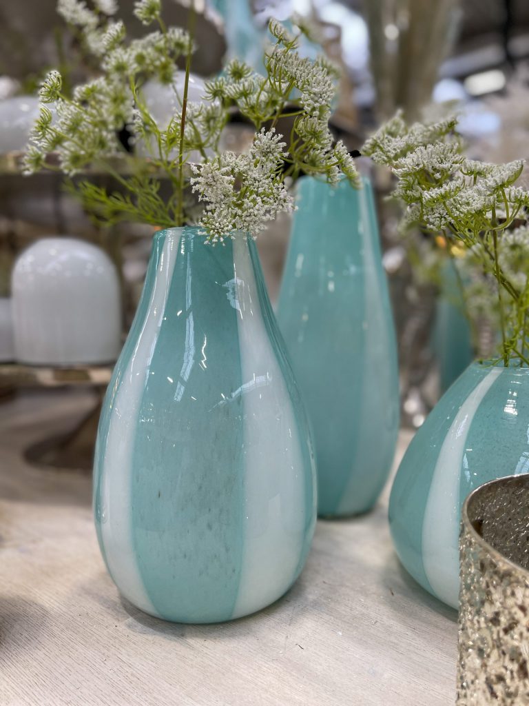 Vase mit Streifen Hellblau