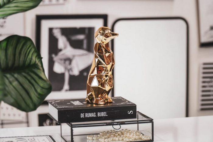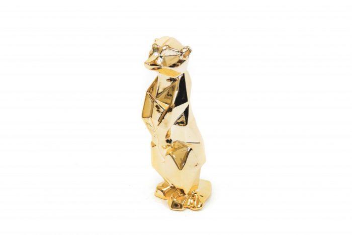 Deze wasbeer zoekt een nieuw baasje! Dieren maken een interieur speels en zijn tegelijkertijd ook kunstobjecten. Door de geometrische vormen lijkt het alsof dit keramische beeld van papier gevouwen is. Hierdoor lijkt dit wasbeer beeldje van keramiek een echt kunstwerk!